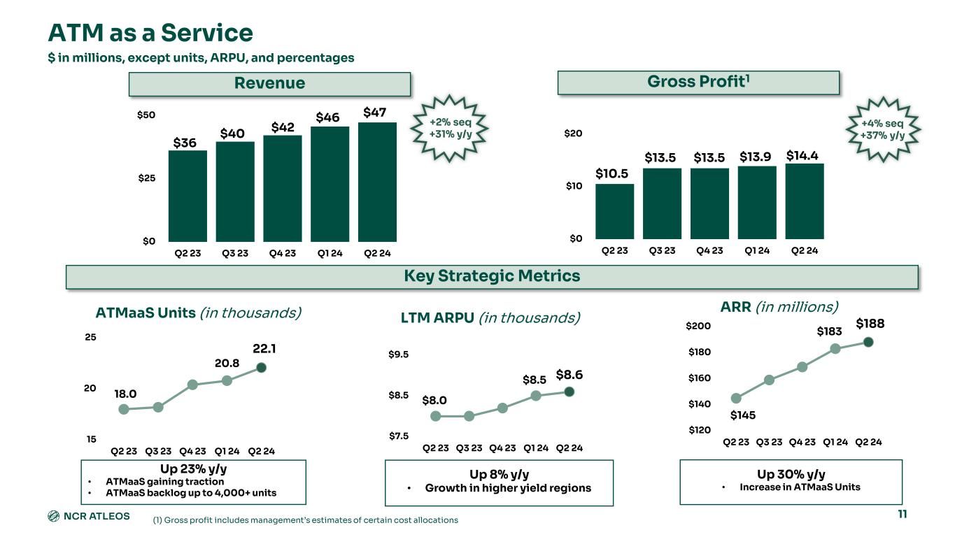 $1,475 $1,575 $1,675 Q2 23 Q3 23 Q4 23 Q1 24 Q2 24 55% 60% 65% Q2 23 Q3 23 Q4 23 Q1 24 Q2 24 $0 $100 $200 Q2 23 Q1 24 Q2 24$550 $625 $700 Q2 23 Q1 24 Q2 24 $628 $654 Recurring Revenue Mix % ARR 58% $173 $1,500 62% $673 $158 $1,573 63% $1,666 Revenue Adjusted EBITDA Key Strategic Metrics Up 500 bps y/y • Growth in Software and Services • ATMaaS gaining traction Up 11% y/y • Growth in Software and Services $134 SELF-SERVICE BANKING $ in millions, except percentages 10 Fiscal Year 2023 Fiscal Year 2024 Fiscal Year 2023 Fiscal Year 2024 +7% seq +3% y/y +18% seq down y/y