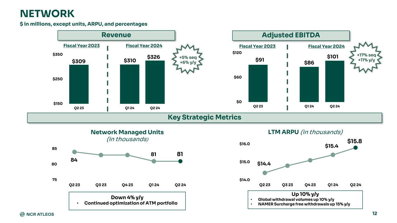 15 20 25 Q2 23 Q3 23 Q4 23 Q1 24 Q2 24 $120 $140 $160 $180 $200 Q2 23 Q3 23 Q4 23 Q1 24 Q2 24$7.5 $8.5 $9.5 Q2 23 Q3 23 Q4 23 Q1 24 Q2 24 $0 $10 $20 Q2 23 Q3 23 Q4 23 Q1 24 Q2 24 $13.9 $0 $25 $50 Q2 23 Q3 23 Q4 23 Q1 24 Q2 24 $36 LTM ARPU (in thousands)ATMaaS Units (in thousands) ARR (in millions) Up 8% y/y • Growth in higher yield regions $8.0 $10.5 18.0 $145 $8.5 $47 $14.4 20.8 $183 Up 23% y/y • ATMaaS gaining traction • ATMaaS backlog up to 4,000+ units Up 30% y/y • Increase in ATMaaS Units $8.6 22.1 $188 Revenue Gross Profit1 Key Strategic Metrics $46 $40 $42 $13.5 $13.5 ATM as a Service $ in millions, except units, ARPU, and percentages 11(1) Gross profit includes management’s estimates of certain cost allocations +2% seq +31% y/y +4% seq +37% y/y