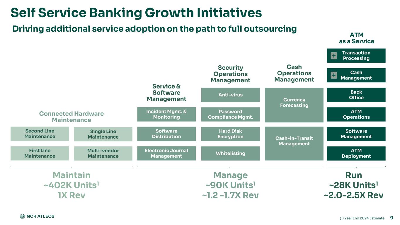 8 Services: 54% of Revenue1 Hardware: 28% of Revenue1 • Supports the largest footprint of ATM’s globally • Solid organic revenue growth over time • Strong and increasing profitability and cash flow generation from incremental service revenues • Industry leading hardware and software solutions provided around the world • Comprehensive ATM hardware suite driven by software, and application platform • Best-in-class global service footprint that ensures efficient maintenance and dependability • Driving productivity and efficiency through technological advancements +520,000 Devices Managed Globally Self Service Banking Business (1) 2024 Estimate Software: 18% of Revenue1 ~$2.7B revenue, ~$0.6B Adj. EBITDA, ~24% Adj. EBITDA Margin1