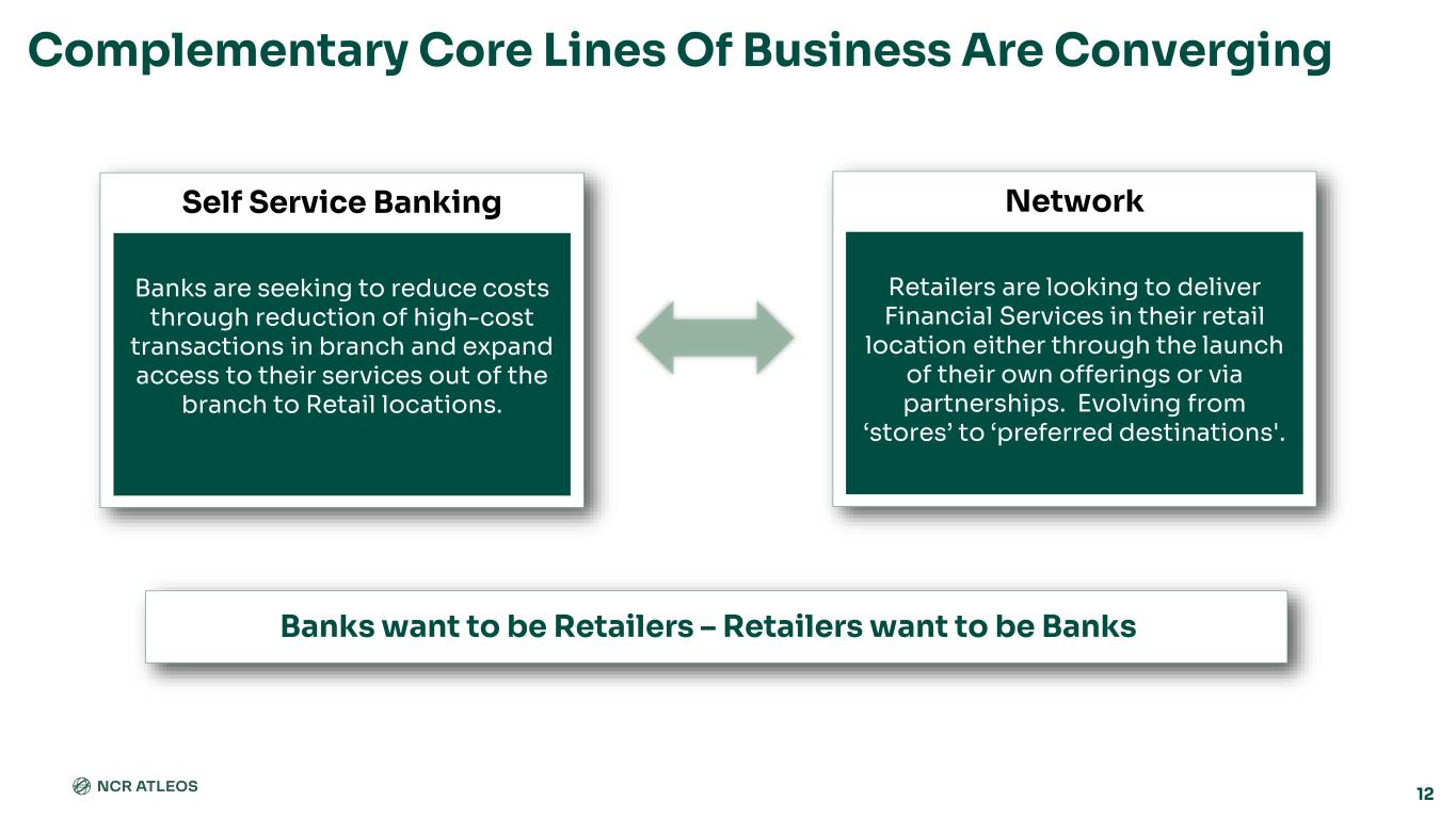 12 Self Service Banking Banks are seeking to reduce costs through reduction of high-cost transactions in branch and expand access to their services out of the branch to Retail locations. Network Retailers are looking to deliver Financial Services in their retail location either through the launch of their own offerings or via partnerships. Evolving from ‘stores’ to ‘preferred destinations'. Banks want to be Retailers – Retailers want to be Banks Complementary Core Lines Of Business Are Converging