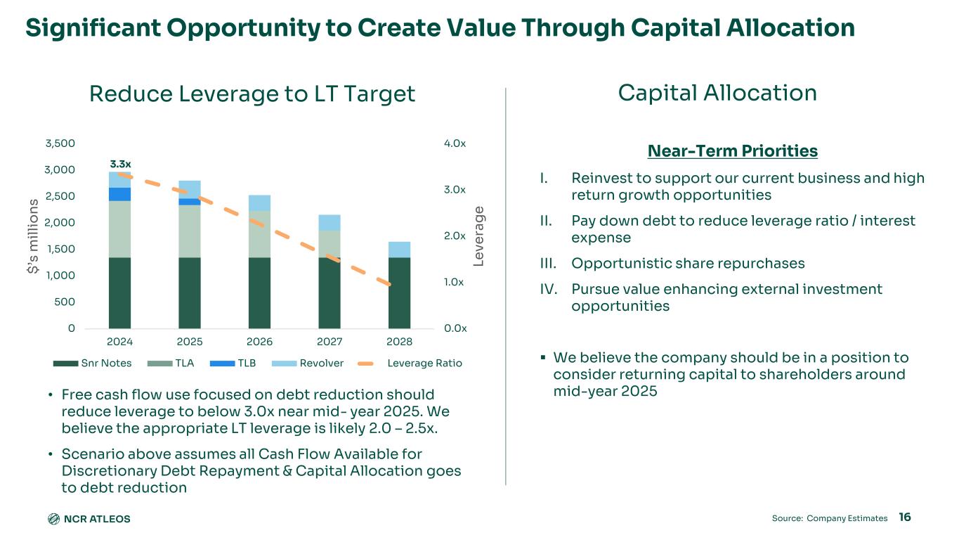 3-5 Year Strategy Objectives Should Drive Tremendous Incremental Profit & Free Cash Flow 15*See definition in Supplementary Materials. Revenue Adj. EBITDA* Free Cash Flow* • Service revenues grow double-digits, with ATM As A Service reaching ~$1.0B billion in annual revenue • Transactional revenues grow mid-single digits, led by incremental volume • Hardware revenues decrease low single digits due to the shift into bundled ATM As A Service revenue • EBITDA margins expand to mid 20% range • Services EBITDA grows in the mid 20% range on growth in high margin outsourcing revenues • Transactional EBITDA grows mid to high-single digits • Hardware & Software EBITDA grow mid-single digits • Driven by EBITDA growth, lower interest expense, lower cash tax rate, and modest capex 2027E2024E ~$785M ~$205M ~6% CAGR +Mid Teens CAGR Increase ~3x $4.3B